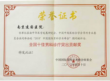 全國(guó)十佳男科診療突出貢獻(xiàn)單位